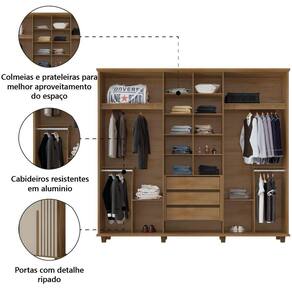 MEDIDAS:: [ A ] = 231 cm [ L ] = 240 cm [ P ] = 57 cm | MODELO:: FRANCA RIPADO C/PES | ACABAMENTO:: Pintura UV | PORTAS :: 6 | TIPO DE PORTA:: Bater | DOBRADIÇAS:: Metálicas | MARCA:: RV Móveis | COR:: Off White / Cinamomo | MATERIAL DA ESTRUTURA:: MDP/MDF | POSSUI ESPELHO:: Sim | GAVETAS:: 3 | GAVETAS SUPORTAM ATÉ:: 5kg cada | CORREDIÇAS:: Telescópicas | MATERIAL DOS PUXADORES:: MDF | PRATELEIRAS:: 8 | PRATELEIRAS SUPORTAM ATÉ:: 5kg cada | CABIDEIROS:: 4 | MATERIAL DOS CABIDEIROS:: Alumínio | CABIDEIROS SUPORTAM ATÉ:: 10kg | Peso SUPORTADO:: 100kg | PESO:: 194,70kg | GARANTIA:: 8 Meses | AVISO:: A Esplanada Móveis se responsabiliza pela entrega dos produtos adquiridos até a porta de entrada ou portaria do endereço indicado, se a portaria do condomínio permitir, as entregas são efetuadas no piso térreo | ALTURA:: 231 cm Cor: Cinamomo / Off White