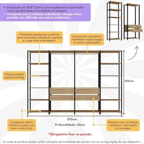 Transforme seu espaço com o Closet Modulado MP4321, uma solução perfeita para quem busca organização, estilo e praticidade. Seu design moderno, com acabamento acetinado e estrutura modular, permite personalizar a disposição dos módulos para melhor se adaptar ao seu ambiente.