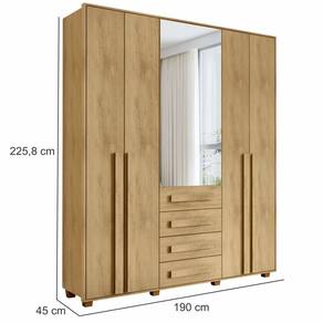 Estrutura: MDP/MDF, moldura de 20 mm de espessura Acabamento: Pintura U.V, de alta qualidade, acabamento interno na cor do produto Porta: Sim, 05 portas com dobradiças metálicas, sendo 01 porta com espelho Gaveta: Sim, 04 gavetas com corrediças telescópicas Espelho: Sim, 01 porta com espelho Puxador: Sim, em MDF Prateleira: Sim, 03 prateleiras Maleiro: Sim, 03 maleiros Pés: Sim, 08 pés em PVC maior segurança e durabilidadeDimensões do produto montado