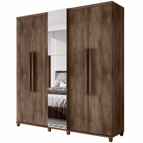 Estrutura: MDP, com moldura de 255 mm de espessuraAcabamento: Pintura U.V, acabamento interno na cor do produtoPorta: Sim, 05 portas com dobradiças metálicasEspelho: Sim, conjunto de espelho com 03 unidadesGaveta: Sim, 03 gavetas internas com corrediças telescópicasCalceiro: Sim, em alumínioCabideiro: Sim, em alumínioSapateira: Sim, no meio do guarda-roupa com 07 prateleirasMaleiro: Sim, 02 maleirosPés: Sim, 08 pés em PVC, maior segurança e durabilidadeDimensões do produto montado