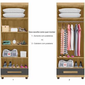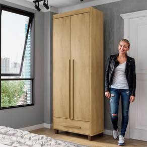 Estrutura: MDP/MDFAcabamento: Pintura U.V., Acabamento interno na cor do produtoPorta: Sim, 02 portas com dobradiças metálicasGaveta: Sim, 01 gaveta com corrediças telescópicasPrateleira: Sim, 05 prateleirasCabideiro: Sim, 01 cabideiroPuxador: Sim, em MDFPés: Sim, 04 pés em PVC maior durabilidade e segurançaExtra: Dupla opção de montagem na parte internaDimensões do produto montado