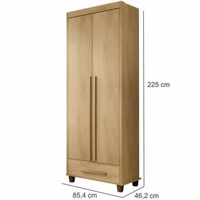 Estrutura: MDP/MDFAcabamento: Pintura U.V., Acabamento interno na cor do produtoPorta: Sim, 02 portas com dobradiças metálicasGaveta: Sim, 01 gaveta com corrediças telescópicasPrateleira: Sim, 05 prateleirasCabideiro: Sim, 01 cabideiroPuxador: Sim, em MDFPés: Sim, 04 pés em PVC maior durabilidade e segurançaExtra: Dupla opção de montagem na parte internaDimensões do produto montado