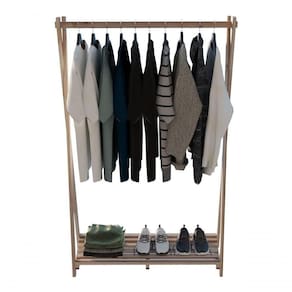 A Arara é produzida com madeira de Pinus secas em estufa, e possui Cabideiro e Prateleira tanto para roupa como para sapateira, tem fácil locomoção.