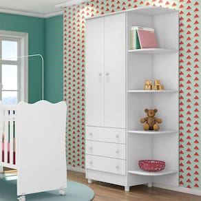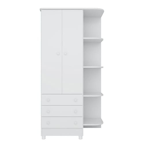 O Guarda-Roupas Infantil Encanto Feliz apresenta um design encantador e funcional, ideal para o quarto dos pequenos. Com 2 portas, 3 gavetas e 7 prateleiras estrategicamente posicionadas, oferece amplo espaço de armazenamento para roupas e acessórios. As gavetas possuem corrediças metálicas de qualidade, garantindo fácil acesso e excelente profundidade para armazenamento. Os puxadores em plástico poliestireno com formato de estrela adicionam um toque mágico ao ambiente. Equipado com portas contendo dobradiças metálicas e cantoneira acoplada, este guarda-roupas é uma combinação perfeita de praticidade e estilo. Os pés opcionais evitam o contato direto com o chão, enquanto o acabamento em pintura UV realça sua beleza e durabilidade. Embalado com cuidado para garantir a qualidade do produto, é uma escolha segura e elegante para o quarto infantil.