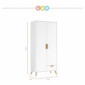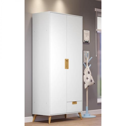Guarda-roupas Infantil 2 Portas 1 Gaveta Caring Serpil Baby Branco/Carvalho. Guarda-roupas Infantil 2 Portas 1 Gaveta Caring Serpil Baby se destaca pelas linhas retas, inspiradas no conceito retrô. Ele é perfeito para ambientes compactos, porém possui um amplo compartimento interno que permite organizar roupas e calçados, de uma forma bem prática. Sua prateleira móvel inferior se ajusta a necessidade de armazenamento de roupas mais longas, é altamente durável devido a composição de MDF combinada com os pés de madeira maciça reflorestada, que prolongam por muito tempo seu uso. Os puxadores de madeira usinados e embutidos nas portas e gaveta, proporcionam uma pegada mais leve. Sua coloração em branco acetinado atóxico combinado com os detalhes em madeira maciça, faz esse móvel se encaixar em qualquer ambiente. Não deixe de conhecer os demais itens desta linha. Ean: 7908506288935