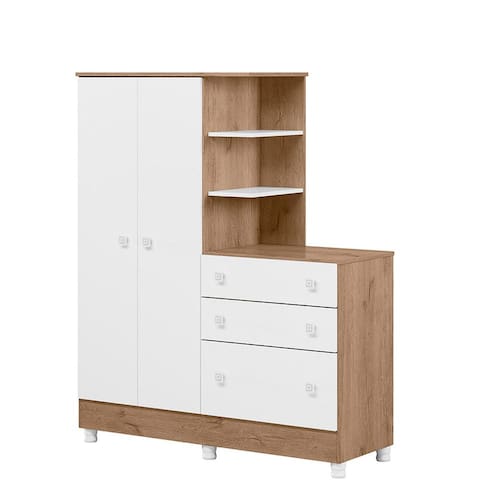 Guarda-Roupas Infantil 2 Portas com Cômoda 3 Gavetas e Nichos Encanto Feliz - ÉdeCasaMóveis - Marrom