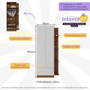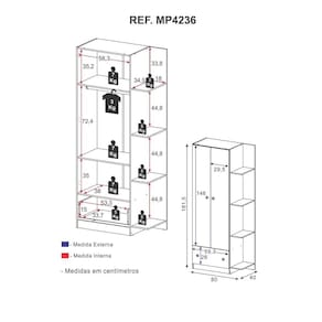 Dimensões do produto montado: Altura: 181,5cm | Largura: 80cm | Profundidade: 40cm *Você pode consultar as medidas detalhadas na imagem técnica do produto.
