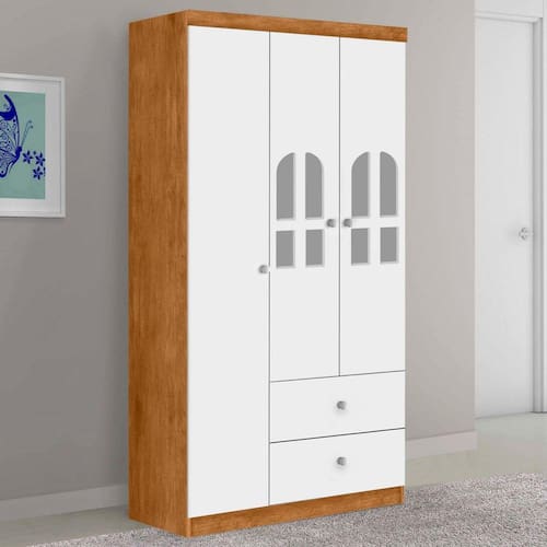 Guarda – Roupa Alvin , 3 portas e 2 gavetas. Qualidade, charme e elegância para o quarto do bebê. Produto misto em MDF/MDP com excelente acabamento com pintura U. V. e Verniz Brilhante de alta resistência que trás durabilidade ao móvel. O roupeiro possui duas gavetas com corrediças metálicas, três portas com dobradiças metálicas e amplo espaço interno com 4 prateleiras e um cabideiro, proporcionando praticidade e organização. O detalhe da porta em acrílico , garante segurança e beleza, refletindo toda delicadeza e aconchego à criança. Acabamento da Gaveta: Pintura UV Acabamento da Porta: Pintura UV Acabamento da Prateleira: Pintura UV Ambiente Principal: Quarto Infantil Complexidade da Montagem: Alta: deve ser montado por um montador especializado Cor: Marrom/Branco Cor do Produto: Marrom/Branco Escala de Brilho: Brilhante Escala de Brilho da Porta: Brilhante Escala de Brilho da Prateleira: Fosco Gaveta com Chave: Não Itens Inclusos: 1 Guarda Roupas, Manual de Montagem e Kit Ferragens Manual de Montagem e Instalação: https://cdn2.madeiramadeira.com.br/atributo/j-a-moveis/1376890-roupeiro-alvin-3-pts.pdf Material da Gaveta: MDP Material da Porta: MDF Material da Prateleira: MDP Material Principal: MDP Necessita Montagem: Sim Origem do Produto: Nacional Peso: 56.63 Peso Máximo por Gaveta: 8 Possui Cabideiros: 01 Possui Calceiros: Não Possui Espelho: Não Possui Possui Organizador de Gaveta: Não Possui Pés: Não Possui Portas: 03 Possui Prateleiras: 04 Recomendações de Uso, Manutenção e Limpeza: Limpar com pano seco, manter em lugar livre de umidade, ao abrigo de exposição direta ao sol. Sapatas Niveladoras: Sim Sistema de Montagem: Parafusos, tampas, pregos Tipo de Corrediça da Gaveta: Metálica Simples Tipo de Dobradiça/Corrediça da Porta: Metálica Tipo de Gaveta: Externa Tipo de Guarda-Roupa: Infantil Tipo de Puxador da Porta: Externo