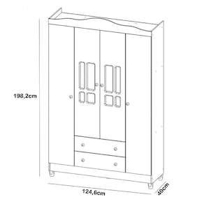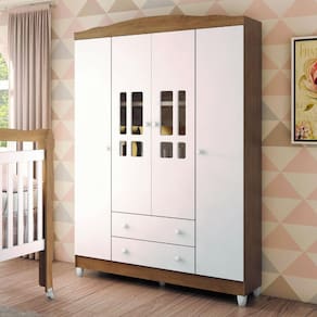 O Guarda-Roupas Infantil 4 Portas Ariel Carolina Baby, traz uma nova proposta, sua simplicidade tem o frescor da novidade. É fabricado com material Mdf/Mdp, tem 3 portas, 2 gavetas externas com travas de segurança, possui portas com apliques de acrílico.