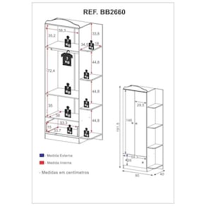 Dimensões do produto montado: Altura: 191,5cm | Largura: 80cm | Profundidade: 40cm *Você pode consultar as medidas detalhadas na imagem técnica do produto.