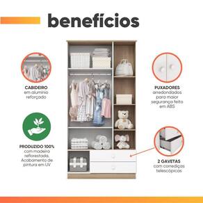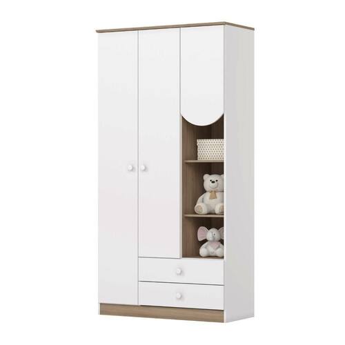 Guarda Roupas Infantil Para Quarto Bebê 3 Portas 2 Gavetas Magia Branco / Madeirado
