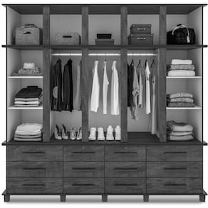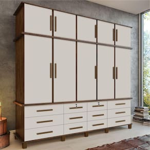 Estrutura: Produto produzido em MDF e MDP.Acabamento: Pintura U.V. (Ultra Violeta) resistente a risco nos painéis e PU (poliuretano) nas bordas soft das portas e gavetas.Pés: 10 pés de madeira reflorestada.Gavetas: 12 gavetas com corrediças metálica, sendo 02 gavetas com chave.Portas: 10 portas com puxadoresCabideiro: Em alumínioExtra: Maior profundidade da categoria, divisões internas na cor bege brilhante propiciando leveza ao ambiente.Altura: 244 cmLargura: 244 cmProfundidade: 56,5 cmPeso: 256,9 KgGarantia: 03 mesesInformações Sobre Montagem: Não possuímos serviço de montagem.