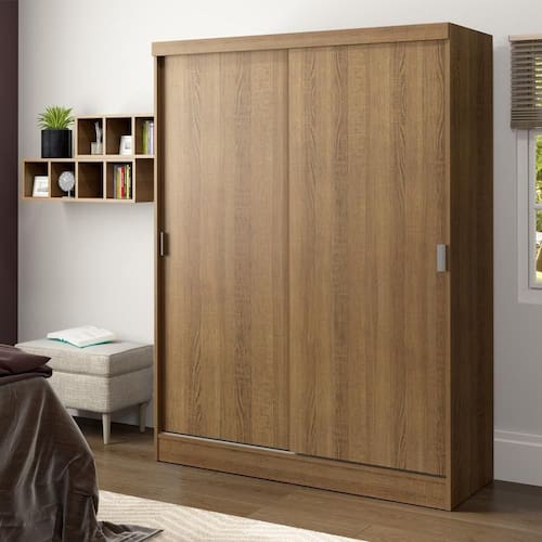 - Estrutura: 2 Cabideiros; 2 Gavetas; 1 Tranca com Chave para Gaveta; 3 Prateleiras; 2 Portas de Correr