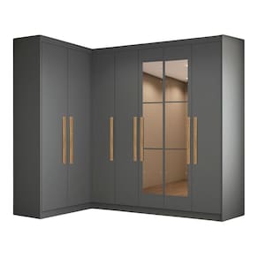 Esta modulação conta com um Canto Paris 2 portas e um Paris 4 portas, ambos com amplo espaço interno, muito bem distribuído com prateleiras para melhor aproveitamento, cabideiro em madeira e uma estrutura versátil que acomoda roupas longas.