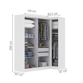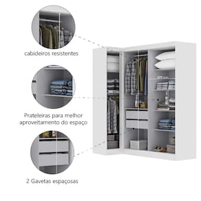 Transforme seu ambiente com o Guarda Roupas Modulado de Canto, que oferece versatilidade e organização para o seu espaço. Com design moderno e inteligente, ele se encaixa perfeitamente em cantos, otimizando a área disponível sem comprometer a circulação. Possui cabideiros resistentes para manter as roupas sempre bem penduradas e sem amassar, além de prateleiras internas estrategicamente posicionadas para melhor aproveitamento do espaço. Conta ainda com duas gavetas amplas, ideais para guardar roupas íntimas, acessórios ou outros itens pessoais. Um móvel versátil, prático e espaçoso, pensado para facilitar o dia a dia e manter tudo em ordem com estilo.
