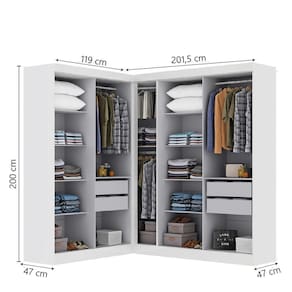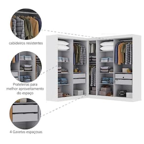 Transforme seu ambiente com o Guarda Roupas Modulado de Canto, que oferece versatilidade e organização para o seu espaço. Ele conta com cabideiros resistentes, ideais para pendurar roupas de forma prática e sem amassar. As prateleiras internas são bem distribuídas, permitindo melhor aproveitamento do espaço para acomodar roupas dobradas, caixas ou acessórios. Além disso, possui 4 gavetas espaçosas que ajudam a manter tudo em ordem. É uma solução funcional, versátil e pensada para deixar o ambiente mais organizado e eficiente.