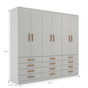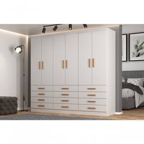 O Guarda Roupas NEW MÔNACO é daquele tipo de peça que além de ajudar na organização da rotina do dormitório, ainda deixa ele muito mais agradável e com uma decoração moderna. A estrutura oferece gavetas para os acessórios pessoais e cabideiros para as roupas que vão penduradas. Tamanho do produto montado: - Altura: 180 cm | Largura: 180 cm | Profundidade: 40 cm. Produto em MDP, possui 12 gavetas e 6 Portas