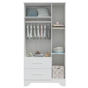 Características: - Pintura atóxica - Acabamento em verniz - Possui cabideiro metálico - Puxadores em MDF revestido - Peso máximo por gaveta: 4kg - Porta com dobradiça metálica - Gavetas com corrediça telescópica
