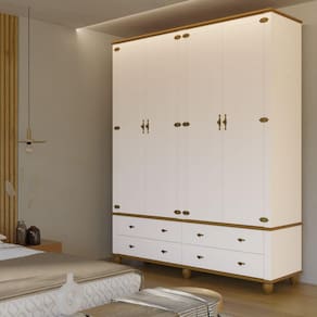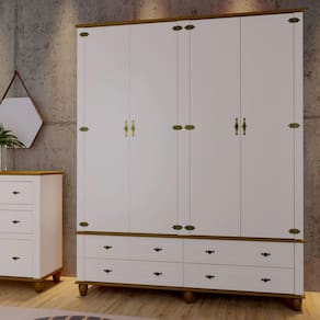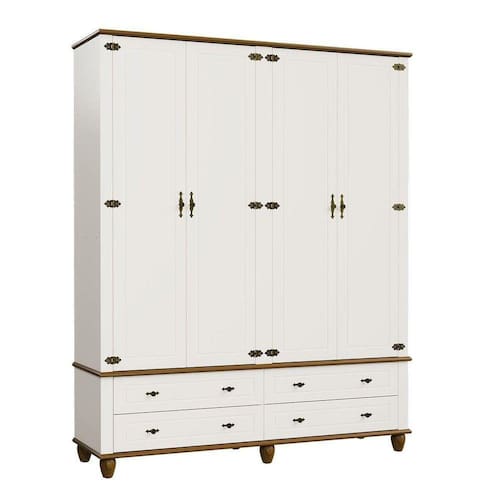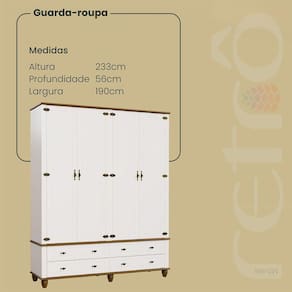 Guarda-Roupa Retrô 4P 4G - Off White/Nogueira