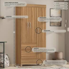 Guarda-roupas Solteiro 3 Portas 2 Gavetas Multimóveis Cr35186 Amêndola Amêndola O Guarda-Roupas Solteiro 3 Portas 2 Gavetas Multimóveis CR35186 é um móvel essencial para organizar suas roupas e acessórios com praticidade e estilo. Sua estrutura em MDP e acabamento em pintura UV garantem durabilidade e resistência, mantendo seu guarda-roupa impecável por muito tempo. Com três portas com puxadores em ABS, você terá fácil acesso ao conteúdo interno, que conta com três prateleiras, para acomodar seus itens de forma organizada, e cabideiro em madeira, para pendurar suas peças preferidas sem amassá-las. Possui duas gavetas externas de diferentes dimensões e com corrediças metálicas. Os pés em PVC protegem o móvel da umidade enquanto facilitam a limpeza do ambiente. Conteúdo da Embalagem: 1 (um) Guarda-Roupa Manual de Montagem Kit Ferragem