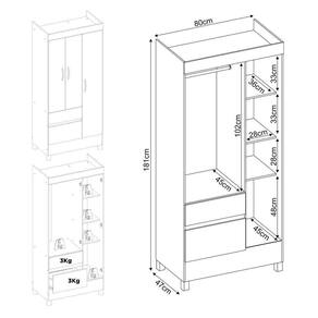 Dimensões do produto montado: Altura: 181cm | Largura: 80cm | Profundidade: 47cm *Você pode consultar as medidas detalhadas na imagem técnica do produto.