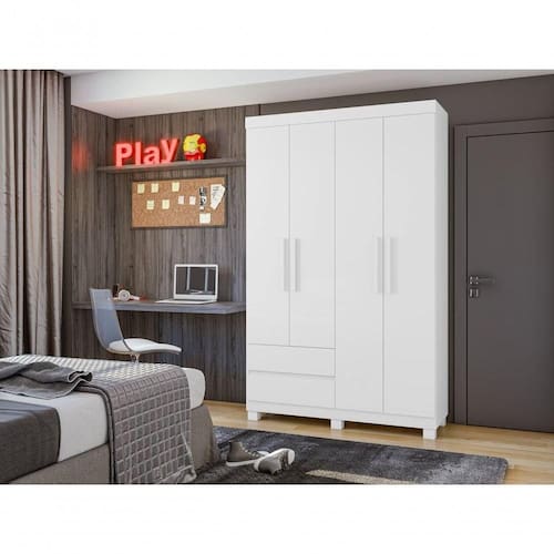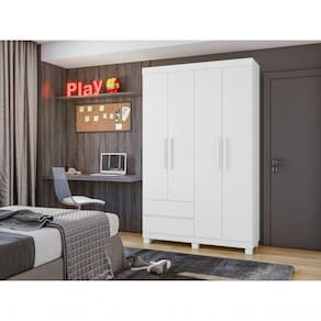 Guarda-roupas Solteiro 4 Portas 2 Gavetas Sem Espelho Com Pés Zeus - Lopas Branco
