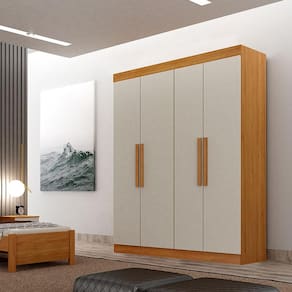 Guarda Roupas Solteiro 4 Portas Canadá Cinamomo Off White – Leifer Móveis