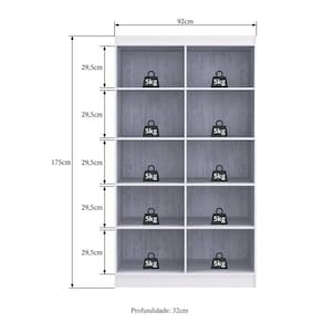 Dimensões do produto montado: Altura: 175cm | Largura: 92cm | Profundidade: 32cm *Você pode consultar as medidas detalhadas na imagem técnica do produto.