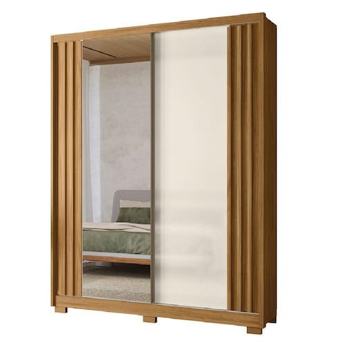 MODELO: Guarda Roupas Solteiro Com Espelho Ripado 2 Portas 3 Gavetas Colorado