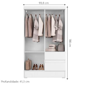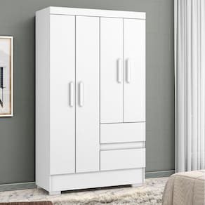 O Guarda Roupas Coimbra vai atender todas suas necessidades para melhor organização de suas roupas e acessórios. Possui 2 gavetas, 2 cabideiros em madeira revestido em pvc cinza garantindo a sustentação das roupas sem quebrar com facilidade e sem envergar com o tempo de uso, e 4 portas com dobradiças que garantem ainda mais suavidade na hora de abrir e fechar. Feito com materiais de qualidade garantindo maior durabilidade e resistência ao produto. MODELO: Guarda Roupas Solteiro Juvenil 4 Portas 2 Gavetas Coimbra Aramóveis MARCA: Aramóveis COR: Branco ACABAMENTO: Verniz MEDIDA DO PRODUTO [ A ] = 186 cm [ L ] = 99,8 cm [ P ] = 41,3 cm MATERIAL DA ESTRUTURA: MDP 12 mm QUANTIDADE DE PORTAS: 4 TIPO DE PORTA: Bater QUANTIDADE DE GAVETAS: 2 GAVETAS SUPORTAM ATÉ: 4 kg QUANTIDADE DE PRATELEIRAS: 2 PRATELEIRAS SUPORTAM ATÉ: 15 kg QUANTIDADE DE CABIDEIRO: 2 MATERIAL DE CABIDEIRO: Madeira revestida com PVC CABIDEIROS SUPORTAM ATÉ: 10 kg MATERIAL DE DOBRADIÇA: Metálica MATERIAL DE CORREDIÇA: Metálica MATERIAL DO PUXADOR: MDF 18 mm QUANTIDADE DE PÉS: 4 MATERIAL DOS PÉS: PVC GUARDA ROUPAS SUPORTA ATÉ: 40 kg PESO BRUTO: 50,20 kg GARANTIA: 3 Meses AVISO:A Esplanada Móveis se responsabiliza pela entrega dos produtos adquiridos até a porta de entrada ou portaria do endereço indicado, se a portaria do condomínio permitir, as entregas são efetuadas no piso térreo e é de responsabilidade do cliente a locomoção da mercadoria até seu apartamento ou casa. Confira as dimensões do produto e certifique-se de que estão adequadas aos elevadores, portas e corredores do local da entrega. Não fazemos a montagem, desmontagem do produto e/ou portas e janelas, transporte pela escada ou içamento pelo lado de fora do prédio. Não está incluso no serviço de entrega o deslocamento até o interior do apartamento, com ou sem elevador, ou deslocamento em locais de difícil acesso como escadarias.