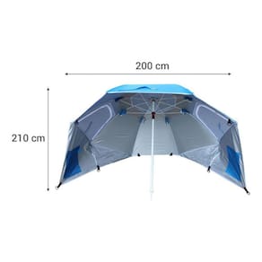 Guarda Sol/Paravento 2M Uv50 da marca Klimber. Este produto possui um diametro de 200 cm, peso bruto de 2,7 kg, altura de 205 cm e largura de 200 cm. O sistema de acionamento e manual e a forma e redonda. A cor e azul e o material e metal. Possui garantia de 3 meses e caracteristicas do tecido com UPF + 50. Perfeito para aproveitar um dia de sol na praia com protecao.