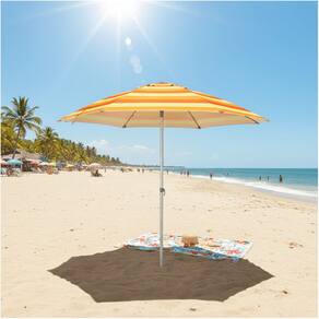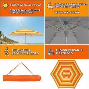 Acompanha uma sacola tiracolo que facilita o transporte e armazena o guarda-sol com praticidade.