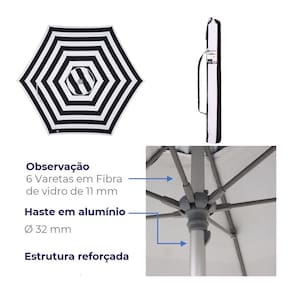 Acompanha uma sacola tiracolo que facilita o transporte e armazena o guarda-sol com praticidade.