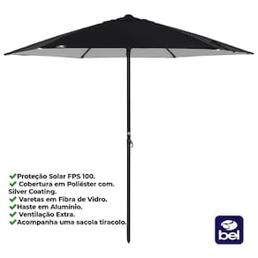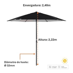 Guarda Sol Premium 2,40m Alumínio Reforçado Milagres Preto