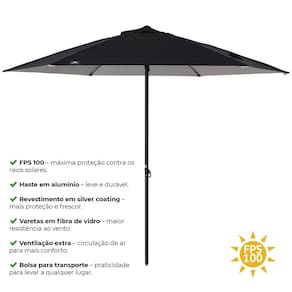 Guarda Sol Premium 2,60m Alumínio Reforçado Milagres Preto - 12807 Belfix
