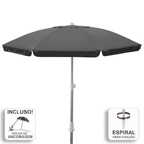 Acompanha Kit de Fixação/Ancoragem. Reforçado e com design diferenciado, chama atenção por sua elegância. Projetado com uma estrutura em alumínio reforçado e varetas em fibra de vidro que garantem resistência aos efeitos da corrosão. As 8 varetas em fibra de vidro com espessura de 7.9 mm garantem robustez ao produto. Possui saída de ar no topo que auxilia na estabilidade e sua haste em alumínio vem com sistema de fixação em espiral. Sua cobertura com fator de proteção solar UV 50+ é feita com tecido em poliéster com camada de silver coating. Acompanha bolsa de transporte. Prático, resistente, bonito e leve.