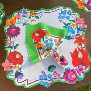 Descubra o colorido da coleção Charme. Com um desenho diferenciado, deixará sua mesa alegre e sofisticada. O bordado é um efeito provocado pela impressão do americano 3D. Com a coleção charme você leva a beleza única do bordado na facilidade e praticidade de um tecido que pode ir na máquina!