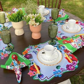 Composição: 01 peça de guardanapo (serve um lugar à mesa). Vendido individualmente. Dimensões: 45cm x 45cm Impressão: Digital de alta resolução Material: Linho texturizado misto Peça recortada à laser, o que garante o contorno perfeito e um acabamento de alta qualidade (não desfia). Altamente resistente a lavagem Não amarrota As cores podem se diferenciar da tela do computador Obs: não inclui outros itens das fotos, apenas o item em questão.
