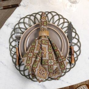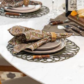 Guardanapo Copa E Cia Indian 4 Peças Sita Guardanapo Copa e Cia Indian 4 Peças Sita - Características Gerais do Produto: - Composição: 100% Algodão. - Detalhes: Kit Contém 04 peças.; Design Exclusivo Copa&Cia.; Produzido na Índia.; As cores podem sofrer pequenas alterações de cor, variando de monitor para monitor.; Os objetos que ambientam as fotos não acompanham o produto.; As fotos produzidas são apenas como sugestão de uso com as demais peças da coleção.; Estampa feita em processo artesanal com técnica indiana. - Cuidados: Não Deixar de Molho.; Passar à ferro até 110C.; Lavar à temperatura normal máxima de 30C.; Secagem em tambor é possível a baixa temperatura.; Evitar contato com objetos cortantes ou superaquecidos.; Não utilizar solventes, abrasivos ou alvejantes.; Não secar ao sol. - Dimensões (cm): Comprimento: 50 cm; Largura: 50 cm Acompanha o produto: - 4 Peças de Guardanapo de Tecido Garantia: - 7 dias/30 dias contra defeito de fabricação