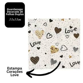 Guardanapo de Papel Estampado Corações Love – Pacote com 20 Folhas