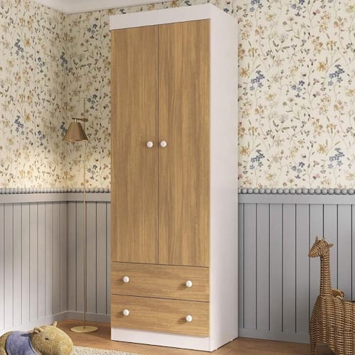 Guarda-roupa Infantil 62cm 2 Portas E 2 Gavetas Encanto Multimóveis Mp4446 Branco/madeirado Branco/madeirado Descubra como pequenos detalhes podem transformar o cantinho do seu bebê em um espaço cheio de encanto e praticidade. O Guarda-roupa Infantil 62cm 2 Portas e 2 Gavetas Encanto Multimóveis MP4446 foi pensado para trazer leveza ao ambiente, deixando tudo mais delicado e organizado. Compacto por fora e surpreendente por dentro, ele oferece o aconchego visual e a funcionalidade que toda família busca. Uma escolha que traz tranquilidade para o dia a dia e beleza para o quarto. Diferenciais: - 3 anos de garantia contra defeitos de fabricação e material. - Produzido em madeira de reflorestamento (MDP 12/15mm) com acabamento acetinado (cerca de 20% de brilho): sustentabilidade e durabilidade. - 2 portas e 2 gavetas: amplo espaço interno para organizar roupinhas e acessórios. - Corrediças telescópicas: permitem a abertura total e o manuseio silencioso das gavetas. - Cabideiro em alumínio: acomoda roupas longas e curtas para que não amassem. - Puxadores em ABS redondos e práticos. - Rodapé: visual harmonioso e facilidade na limpeza do ambiente. - Sistema antitombamento: proporciona segurança para o filho e tranquilidade aos pais.