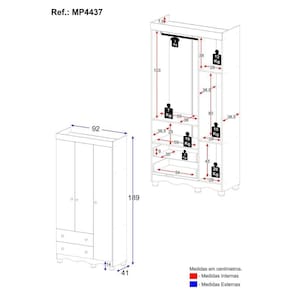Conteúdo da Embalagem: 1 (um) Guarda-roupa Manual de Montagem Kit Ferragem