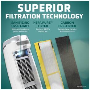 Purificador de ar 4 em 1 para casa o filtro de ar HEPA verdadeiro reduz até 99,97 dos germes nocivos, poeira, pólen, pêlos de animais, esporos de mofo e outros alérgenos tão pequenos quanto 0,3 mícrons do ar Mata os germes a luz UV C ajuda a matar os vírus transportados pelo ar, como influenza, staph, rinovírus e funciona com o dióxido de titânio para reduzir os compostos orgânicos voláteis Detém alérgenos o pré filtro captura poeira, pêlos de animais de estimação e outras partículas grandes, enquanto aumenta a vida útil do filtro HEPA Reduz odores o filtro de carvão ativado ajuda a reduzir odores indesejados de animais de estimação, fumaça, fumaça de cozinha e muito mais Operação silenciosa a configuração mais baixa pode ser usada como um ruído branco suave à noite para um sono tranquilo e repousante Marca: Não Informado