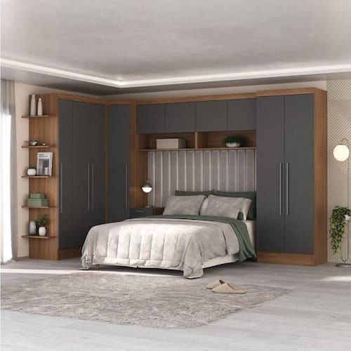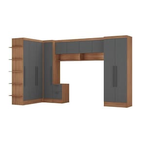 Um excelente produto para seu dormitório, que possibilita um aproveitamento inteligente do espaço disponível em sua casa, sem deixar de agregar beleza, modernidade, praticidade e conforto em seu dia a dia. Altura do Conjunto: 204.5 cm Ambiente: null Ambiente Principal: Quarto Cor: Nogal/Grafite Informação Complementar: 2x Módulo Aéreo 2 Portas Viena Nogal/GrafiteLargura: 90 cmAltura: 68Peso: 19.5Profundidade: 30 cmNecessita Montagem: Sim1x Módulo Mesa de Cabeceira 2 Gavetas Viena Nogal/GrafiteLargura: 35.5Altura: 61.5Peso: 14.5Profundidade: 45 cmNecessita Montagem: Sim1x Módulo de Canto Reto 1 Porta Viena Nogal/GrafiteLargura: 85Altura: 204.5Peso: 54.5Profundidade: 46.5Necessita Montagem: Sim2x Módulo Roupeiro 2 Portas 2 Gavetas Internas Viena Nogal/GrafiteLargura: 71Altura: 204.5Peso: 54.5Profundidade: 49 cmNecessita Montagem: Sim1x Módulo Armário 1 Porta com Prateleira Externa Viena Nogal/GrafiteLargura: 42 cmAltura: 204.5Peso: 37.5Profundidade: 46,5 cmNecessita Montagem: Sim Material Principal: MDP