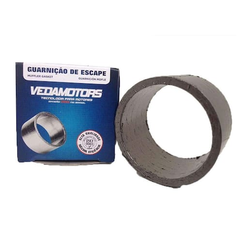 As guarnições de escape Vedamotors são fabricadas em grafite armado com tela de aço, possuem alta resistencia a temperatura do escapamento, não trincando o grafite e resisitindo as vibrações e aperto do escapamento.
