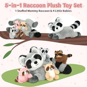 Raccoon Stuffed Animal - Conjunto de brinquedos de pelúcia guaxinim: há 4 bebês fofos guaxinim na barriga da mamãe, basta abrir o zíper e você descobrirá a surpresa! Meninos e meninas vão adorar o design exclusivo e mal podem esperar para brincar com eles. - Material confiável: o pelúcia de guaxinim de pelúcia é feito de tecido de pelúcia curto, preenchido com algodão pp, que é macio e não irrita a pele ao toque. Sem cheiro, não desbota, muito adequado para abraçar e brincar. - Brinquedo divertido e educativo: o bicho de pelúcia guaxinim tem aparência realista, as crianças podem aprender mais sobre o animal guaxinim. Eles podem jogar, contar histórias com amigos, o que é criativo e interessante, ao mesmo tempo em que melhora a interação, melhorando a imaginação e a capacidade das mãos. - Multifuncional e presentes: este conjunto de brinquedos de guaxinim de pelúcia gigante não é apenas um ótimo brinquedo decorativo para cama, sofá, cadeira, mesa ou sofá, mas também um bom travesseiro para dormir. Os adultos podem liberar o desconforto ao abraçar o travesseiro macio. Também é um companheiro de brincadeira quente para acompanhar as crianças crescendo. Basta dar o doce presente para seus entes queridos no Natal, Halloween, Dia dos Namorados, Dia das Crianças, Páscoa, Ação de Graças, Ano Novo ou aniversário. - ?Dicas?: Devido às necessidades de transporte, os brinquedos de pelúcia serão embalados em uma bolsa compactada. Depois de abrir o pacote, você pode dar um tapinha suave ou soprar a superfície de pelúcia com ar quente de um secador de cabelo, eles serão restaurados à forma autêntico em breve.