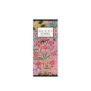 O frasco laqueado rosa e a tampa dourada brilhante o tornam um objeto de beleza. Reinventado com um design inspirado na visão de Alessandro Michele, é uma parte central da identidade da marca, uma pintura de flores coloridas criada pelo artista Vittorio Accornero para Gucci em 1966.