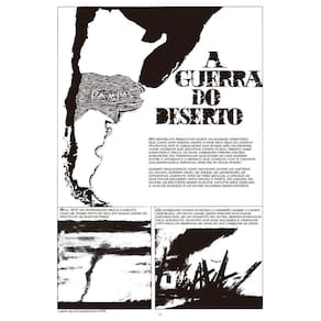 Este livro representa um dos pontos culminantes do quadrinho argentino. A guerra do deserto, de Enrique Breccia, reúne narrativas sobre um momento definidor da alma de seu país. O momento em que surge Martín Fierro, o herói nacional, e acontece a gue rra de extermínio contra a população indígena que fez da Argentina um país “branco”. Criado durante os tumultuosos anos 1970, que desembocaram em uma das mais ferozes ditaduras do nosso continente, o livro é um mergulho na Argentina do século XIX , quando o governo empreendeu uma cruzada contra populações indígenas a fim de liberar terras para o pasto – a exportação de carne já se tornava uma importante atividade econômica no país. Publicadas originalmente na revista de quadrinhos italiana Li nus, as histórias reunidas neste livro abordam os embates entre gaúchos e indígenas na disputa pelos pampas argentinos, mas retratam também dramas humanos no México de Emiliano Zapata, no início do século 20, e a luta do povo argelino contra a coloni zação francesa, nos anos 1950. Momentos de luta contra a opressão e o colonialismo. Então aqui, a negritude do nanquim vem como um grito ou um soco, e o branco é de machucar os olhos.