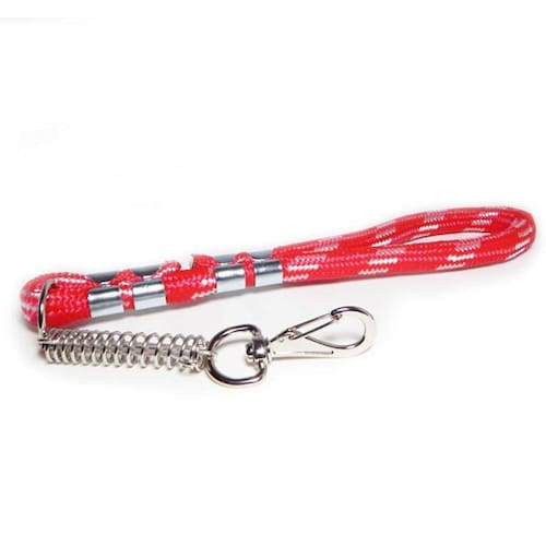Guia para cachorro em corda com mola amortecedora e mosquetão. Cor: Vermelha Comprimento: 35 cm Comprimento Total: 50 cm com a mola amortecedor Espessura da corda: 16 mm