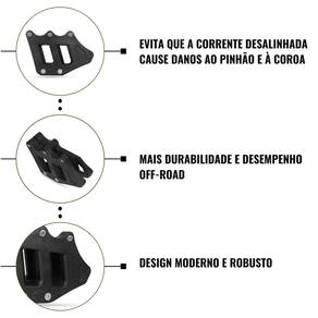Este guia evita que a corrente desalinhada cause danos ao pinhão e à coroa, aumentando a vida útil do conjunto de transmissão.